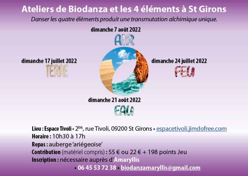 Atelier de Biodanza : danser et connecter l’élément FEU dimanche 24 juillet 2022 à L’Espace Tivoli, 2 bis rue Tivoli, 09200 St Girons .